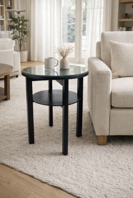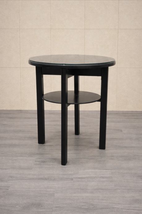 Okrugli stolić sa zaštitnim staklom.