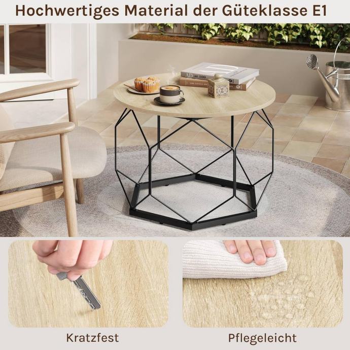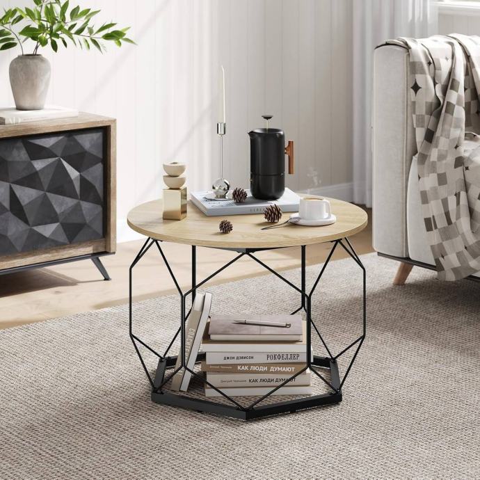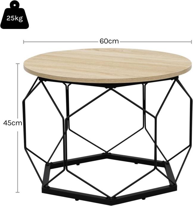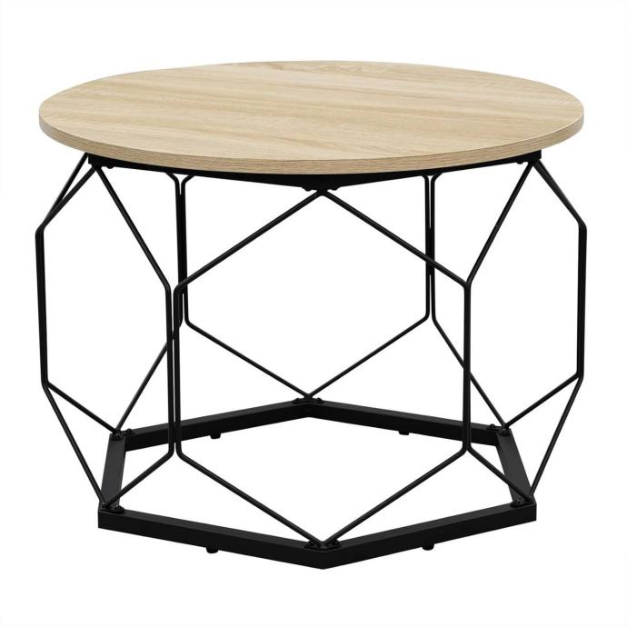 Dizajn spaja ploču u boji svijetlog hrasta i crni geometrijski metalni okvir, kombinirajući vintage i moderni stil. Ovaj elegantni stolić može se savršeno uklopiti uz postojeći namještaj i unijeti atraktivan detalj u vaš prostor.