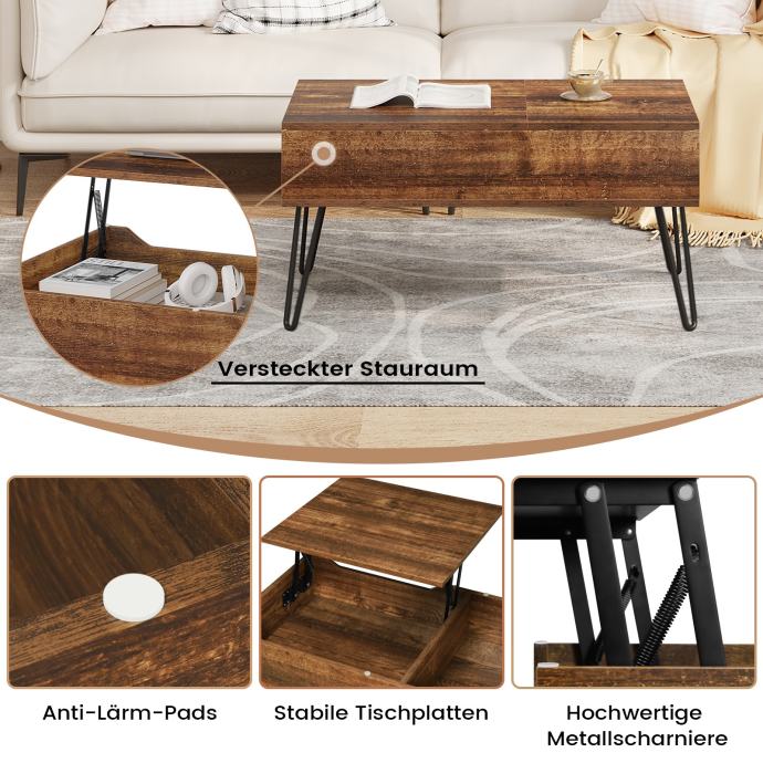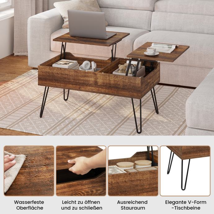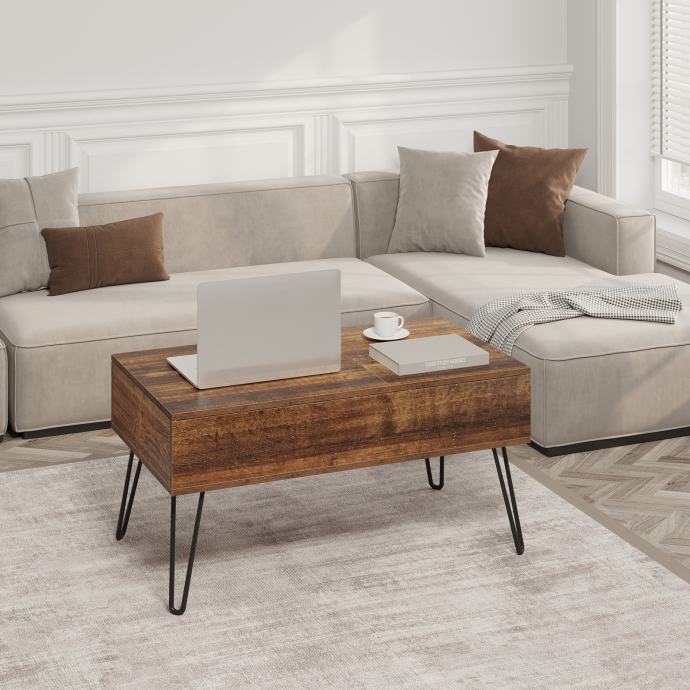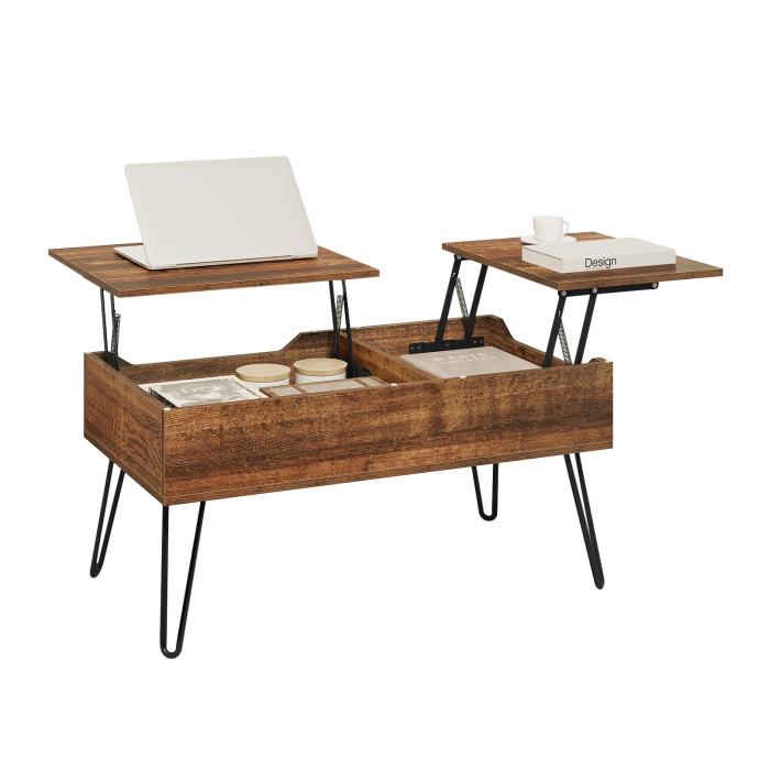 Podizanjem dvije ploče (velika: 50x47 cm, mala: 35x47 cm) otkrivaju se dva odjeljka u kojima možete pohraniti časopise, grickalice, punjače i druge sitnice, čime prostor u dnevnom boravku ostaje uredan i organiziran.