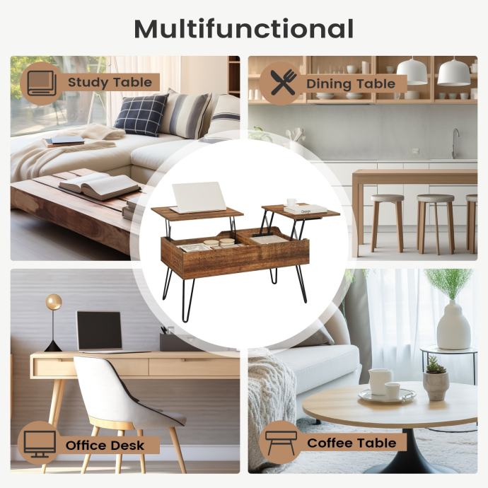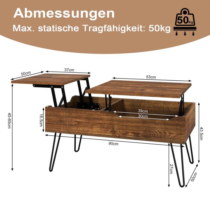 Ovaj praktični stolić za kavu ima dvije velike podizne ploče koje omogućuju udobno radno ili objedovanje s prijateljima i obitelji. Kada se ploče spuste, stolić se transformira u elegantan komad namještaja koji zadovoljava sve vaše potrebe.