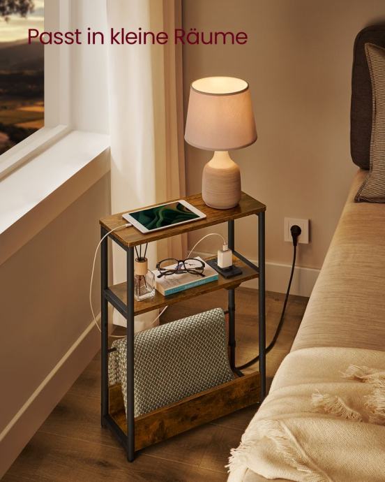 S veličinom od 18 x 45 x 58 cm, ovaj uski noćni ormarić na 3 nivoa možete lako smjestiti u uski prostor, kao što je spavaća soba. B. smjestite ga uz sofu ili krevet i optimalno iskoristite ograničeni prostor. Bilo kao stalak za časopise za čitanje ili kao pomoćni stolić za vaše svakodnevne potrepštine, ovaj višenamjenski stolić za kavu s 3 police čini sve što trebate. Zahvaljujući označenim dijelovima i jasnim uputama, sastavljanje noćnog ormarića je laka stvar. U samo nekoliko minuta možete uživati u ovom praktičnom i elegantnom stoliću za kavu. S 1 priključkom za izmjeničnu struju i 2 USB priključka, tanki bočni stolić omogućuje vam da istovremeno punite svoj mobilni telefon, tablet računalo i druge uređaje. Zahvaljujući 2 m dugom kabelu, možete fleksibilno postaviti stol. Sa svojim robusnim čeličnim okvirom i visokokvalitetnom iveralom, ovaj pomoćni stolić može izdržati do 100 kg i pruža stabilno držanje za vaše dnevne posuđe. Za sve informacije nazovite na broj telefona 092/399-75-19