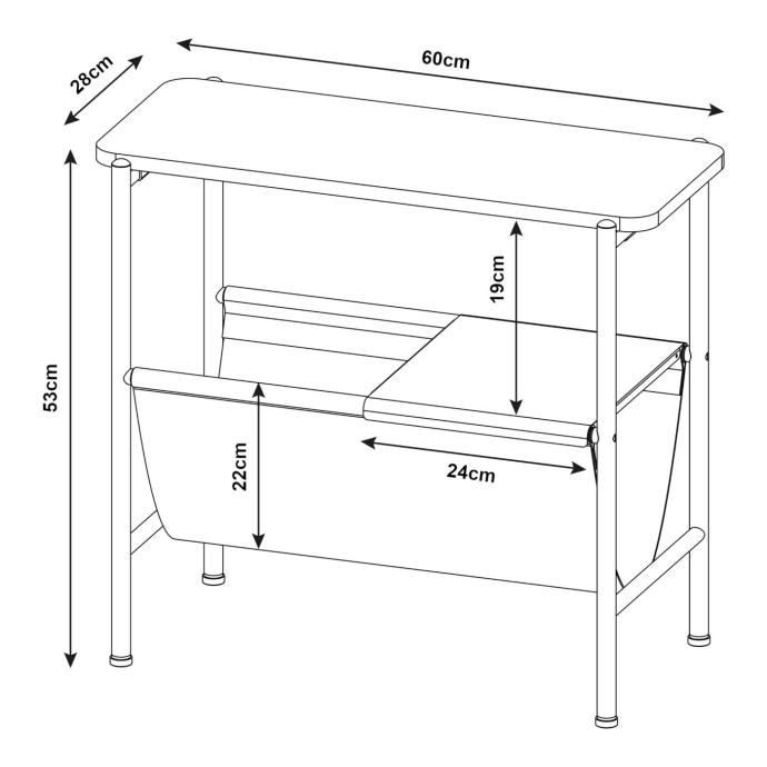 Ploča stola i donja, uklonjiva polica nude dovoljno prostora za vaše osobne predmete. Možete sigurno pohraniti grickalice i pića dok gledate svoju omiljenu seriju ili držati svoje trenutno štivo pri ruci. Stol također možete kreativno koristiti za izlaganje ukrasa poput vaza, svijeća ili okvira za slike. Ispod uklonjive police nalazi se praktična polica od tkanine koja je idealna za odlaganje novina, časopisa ili drugih sitnica.
