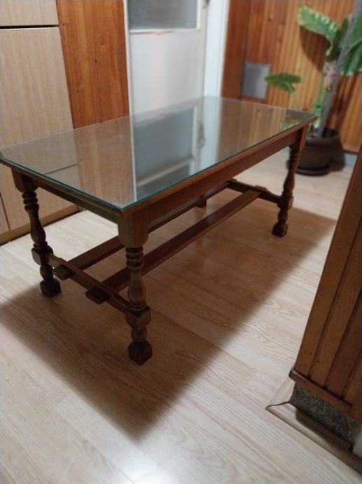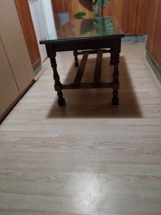 Prodajem povoljno očuvan drveni stolić za dnevni boravak sa staklom visina 55 cm,dužina 110 cm,širina 55 cm cijena 50 eura