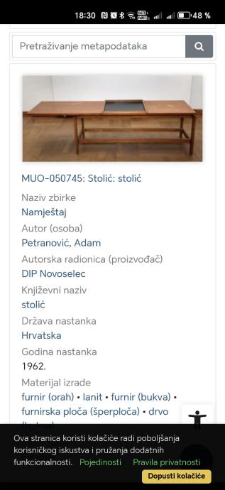Predivan i rijedak stol, 120*47, visina 46.5, razvlači se do 164cm