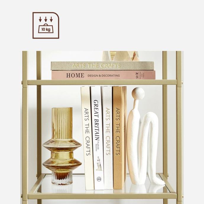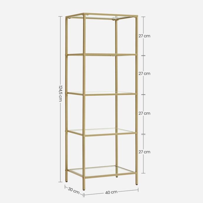 Vaš dom zaslužuje malo luksuza: ravne linije, staklene ploče, zlatni čelični okvir - postavite ovu jednostavnu, ali elegantnu policu u svoj dom i stvorite luksuzan ambijent. Stabilna i elastična: zahvaljujući robusnom čeličnom okviru i visokokvalitetnim policama od kaljenog stakla, ova kupaonska polica je stabilna i ima dobru nosivost (do 10 kg po polici). Osim toga, podesive noge i uključena zaštita od prevrtanja osiguravaju veću stabilnost. Ovaj stalak za pohranu pristaje u različite prostorije - u kupaonicu za ručnike, u radnu sobu za knjige, u dnevnu sobu za ukrasne predmete ili u kuhinju za sve vaše začine! Za sve informacije nazovite na broj telefona 092/399-75-19