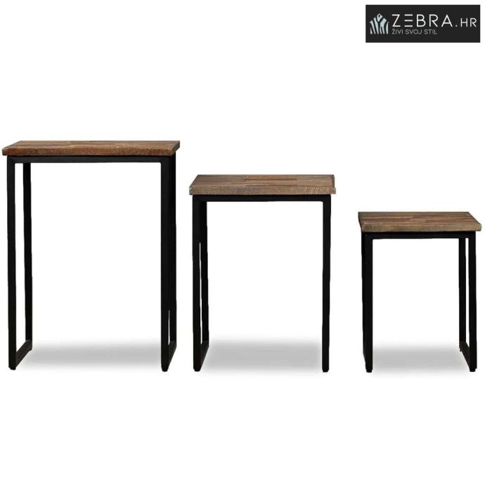 Ovaj zanimljivi industrijski set stolića za kavu bit će bezvremenski dodatak vašem domu. Njegova čvrsta drvena površina pruža stabilnu i sigurnu površinu za odlaganje vaših čaša, vaza, košara s voćem ili ukrasa. Stolići se također mogu upotrebljavati kao bočni stolići ili noćni ormarići.