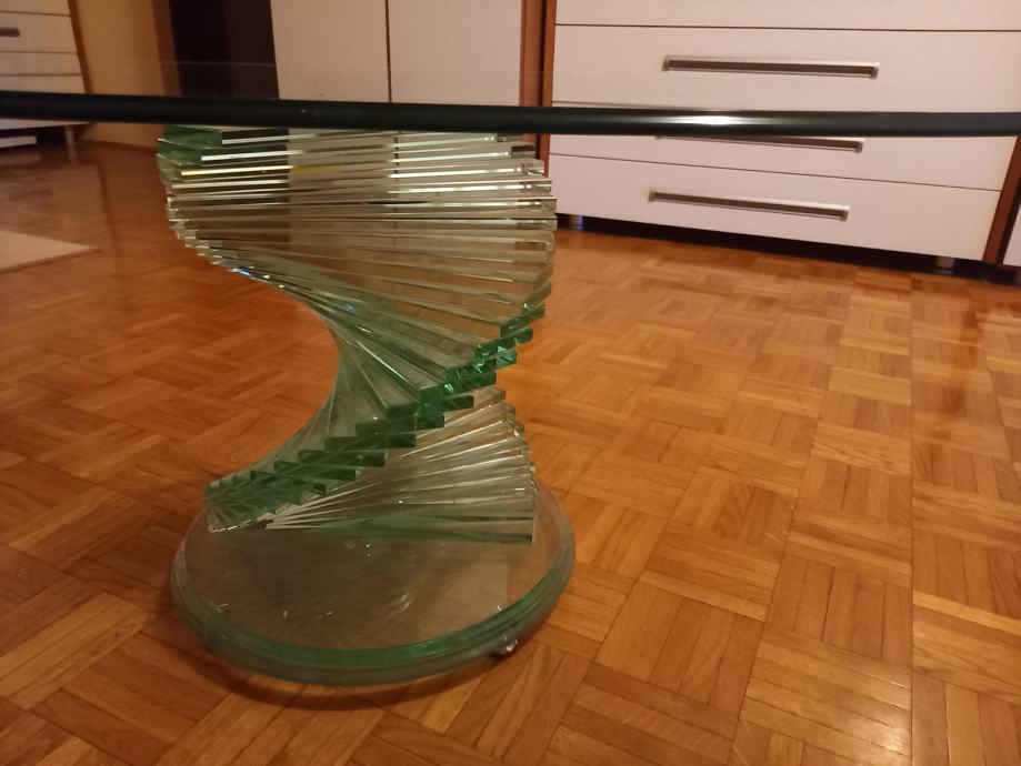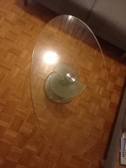 Stakleni stolić ima malo tragova na staklu ali nista znacajno na gornjoj plohi ali očuvan nigdje razbijen. V45 Š65 D115