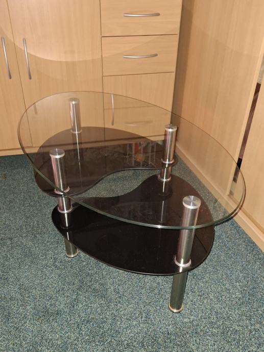 Stakleni stolić 54x90 cm, noge od kroma, prozirno i crno staklo.