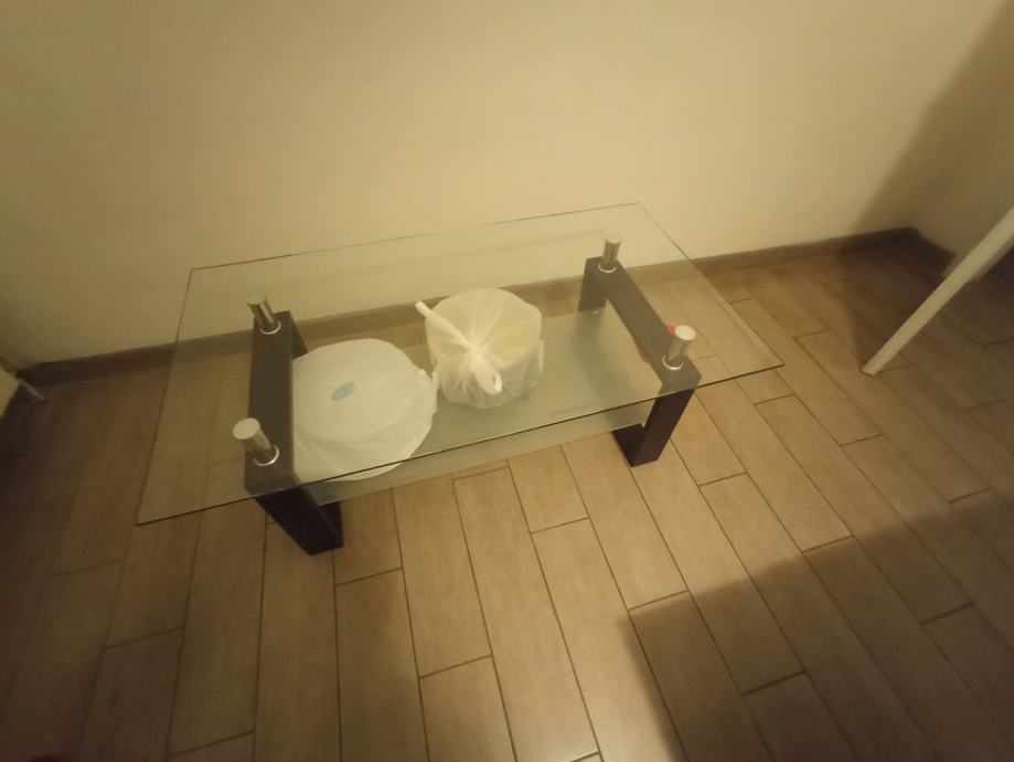 Stakleni stolić za dnevni boravak.Modernog izgleda. V-45 cm, Š-60 cm, D-110 cm. Korišten i oćuvan