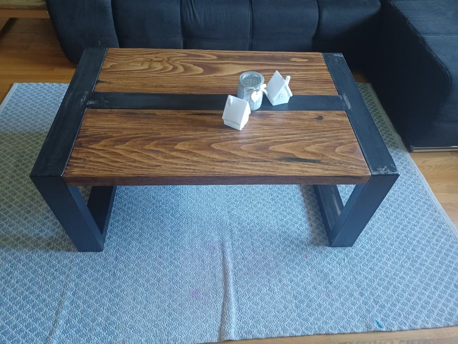 Novo iz naše radionice. Kombinacija željeznog okvira i drva hrasta debljine 4cm. Dimenzija stola 95x60cm, visina 40,5cm