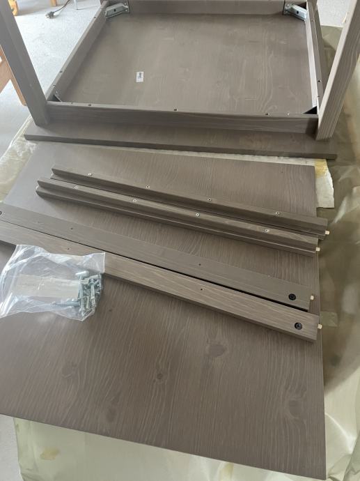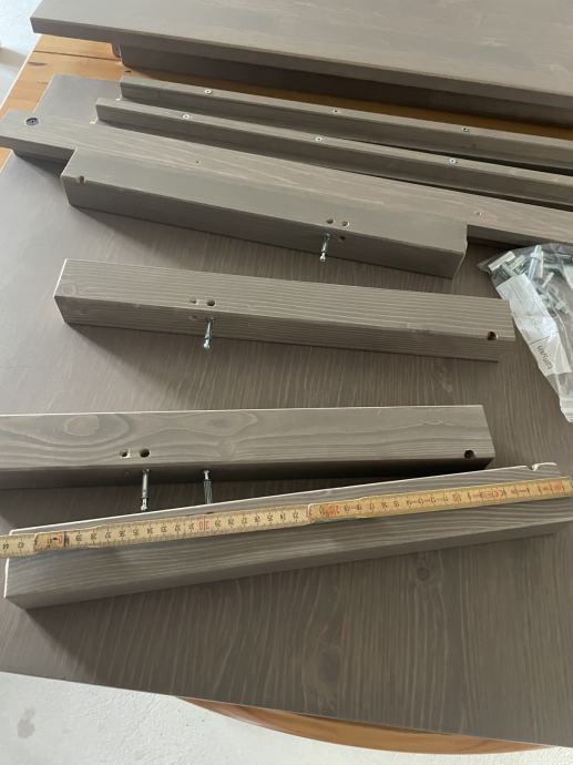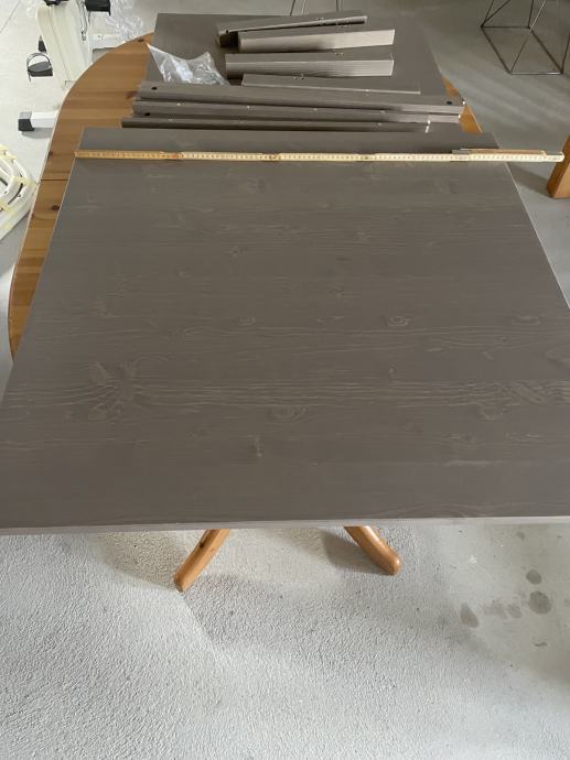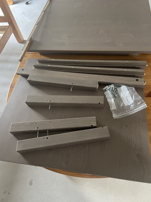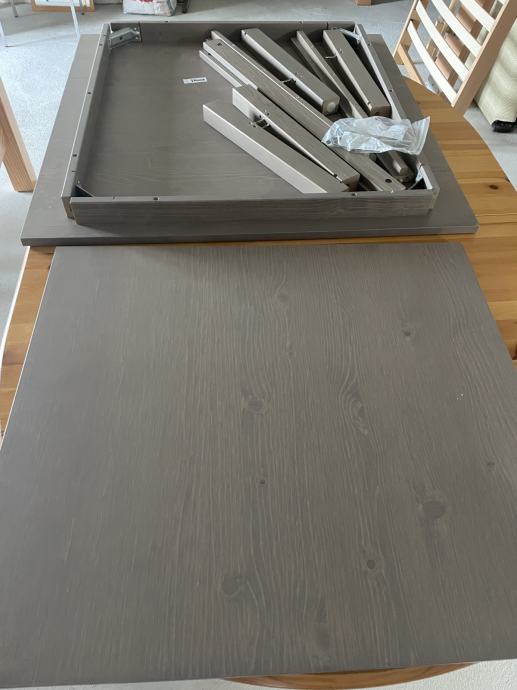 Stol je nov puno drvo sive boje sa policom ispod nije koristen samo je bio sastavljen i opet rastavljen.