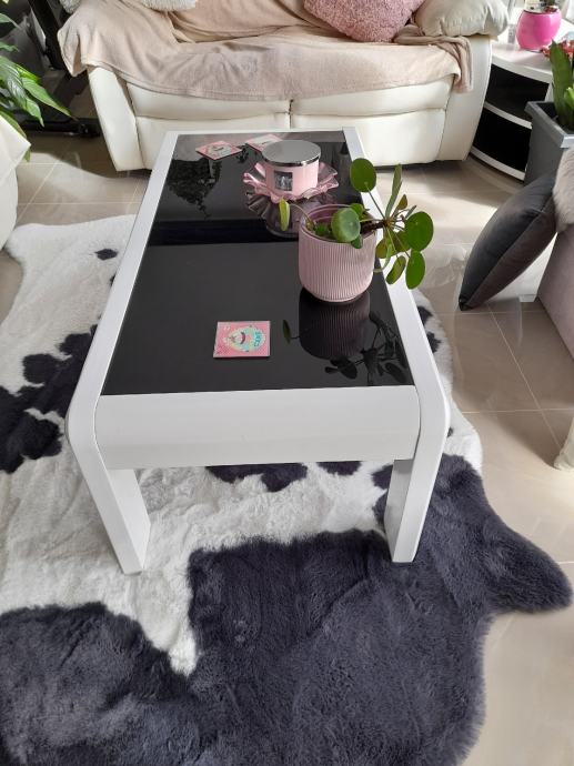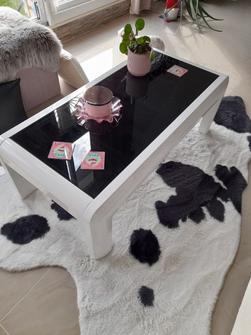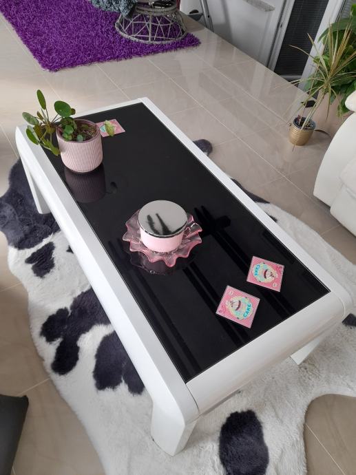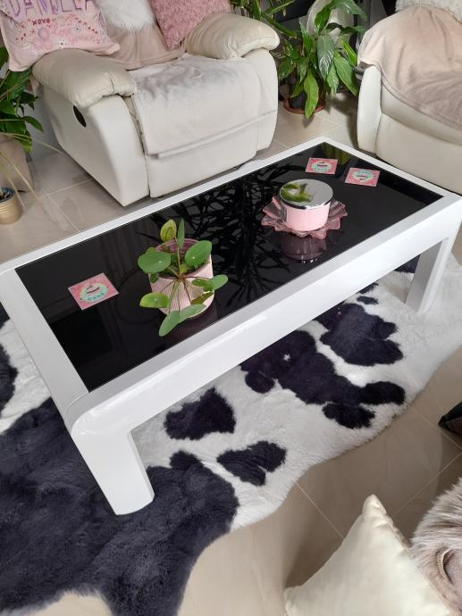 Bijeli stol, visoki sjaj, gornja površina crno staklo.