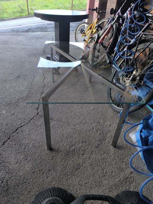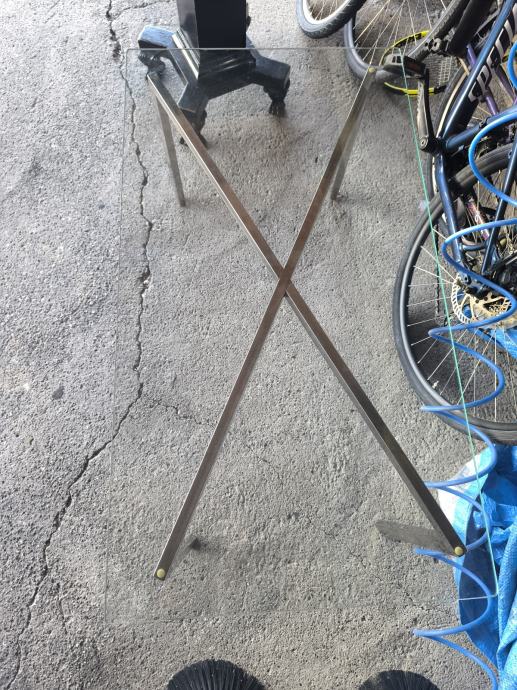Stakleni stolić za dnevni boravak s inox postoljem, Bauhaus stil, elegantan i bez ikakvog ostecenja.