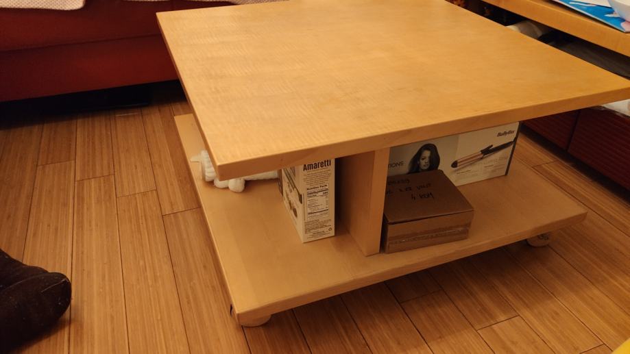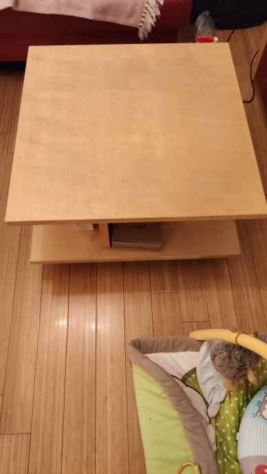Stol za dnevni boravak dimenzije 70.5 cm x 70.5 cm, visina 39 cm. Kvalitetni kotači obloženi s gumom.