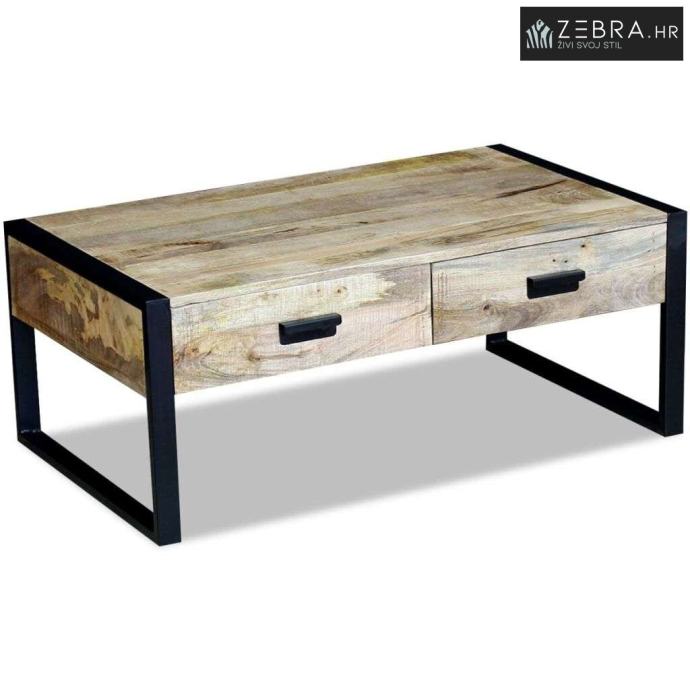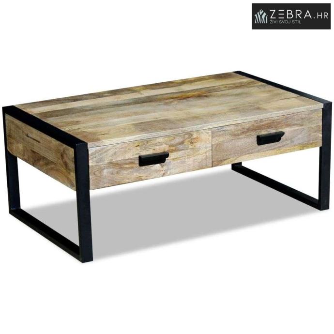 Bez obzira tražite li stol za kavu na kojem možete postaviti hranu i piće, ili bočni stolić za svjetiljku, vazu ili druge ukrasne predmete, ovaj stolić sa čvrstom površinom,bit će izvrstan izbor. Ovaj stolić za kavu ima dvije ladice kako bi vam pružio dodatni prostor za čuvanje malih predmeta kao što su ključevi, notesi, olovke i ostale sitnice.Noge od željeza povećavaju čvrstinu i unose industrijski stil. Vidljiva struktura,čini svaki komad namještaja jedinstven i neznatno drugačiji od sljedećeg.