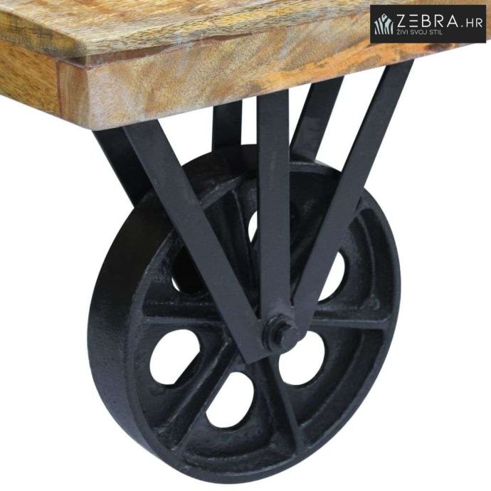 Ovaj stolić za kavu sa četiri kotača,bit će jedinstven dodatak vašoj sobi. Njegova čvrsta drvena konstrukcija čini ga stabilnim i sigurnim za postavljanje pića, košara s voćem, ukrasnih predmeta, itd.Također, stolić za kavu,može se lako pomicati po kući,pomoću četiri fleksibilna čelična kotača.