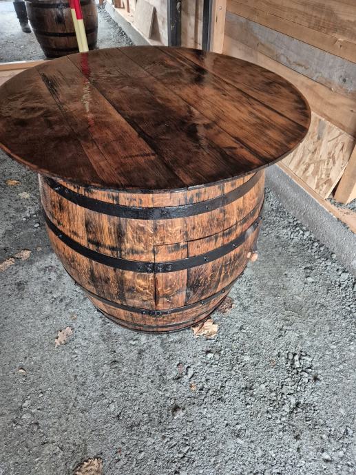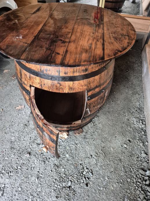Stol od bačve sa vratima visina 80 i promjer ploče 90 cm.