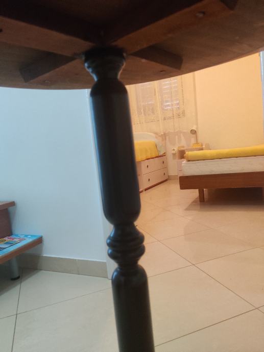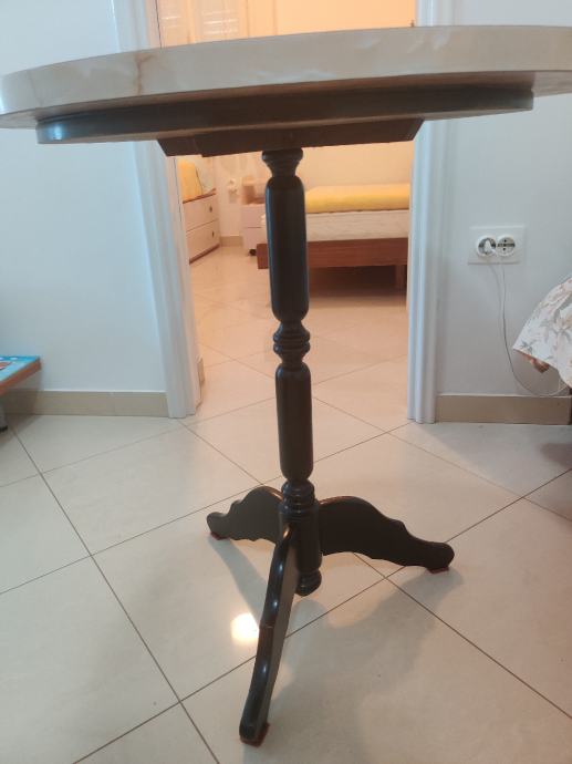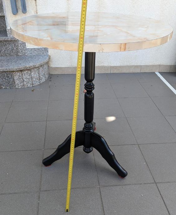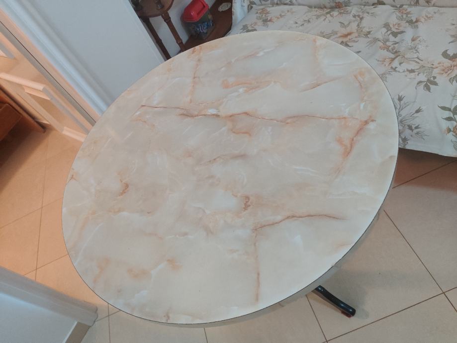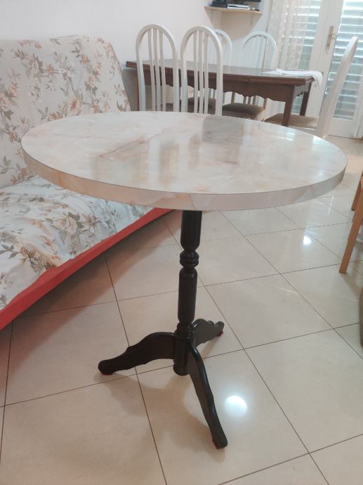Prodajem okrugli stolić sa novom plohom obloženom sa ultrapasom boje rosa portogalo. Postolje obojeno crnim sadolinom.