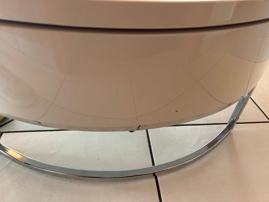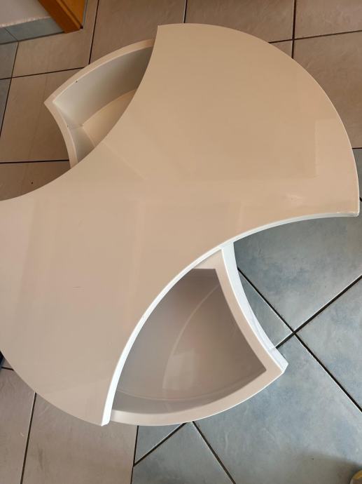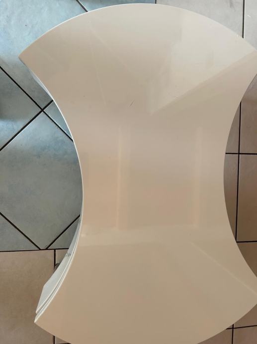 Prodaju se stolic bjeli visoki sjaj. U sredini se okrece i mozu se stvari staviti. Kao na slici sa strane malo ostecen.