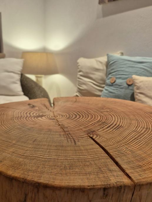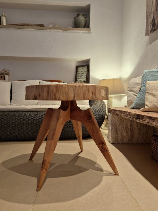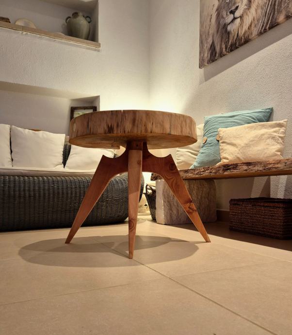 Ručno rađen stolić od drva ariša premazan tikovim uljem.