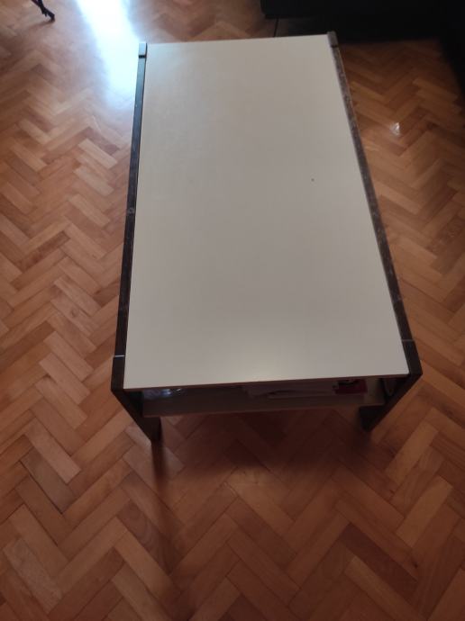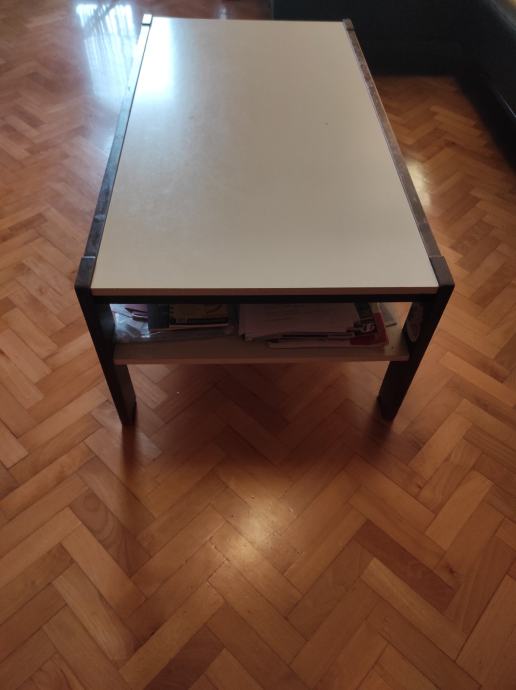 STOLIĆ ZA DNEVNI BORAVAK, BIJELI SA SMEĐIM NOGAMA, DRVNI MATERIJAL dužina/širina/visina: 117/63/44 cm, ČVRST, STABILAN, DOBRO OČUVAN.