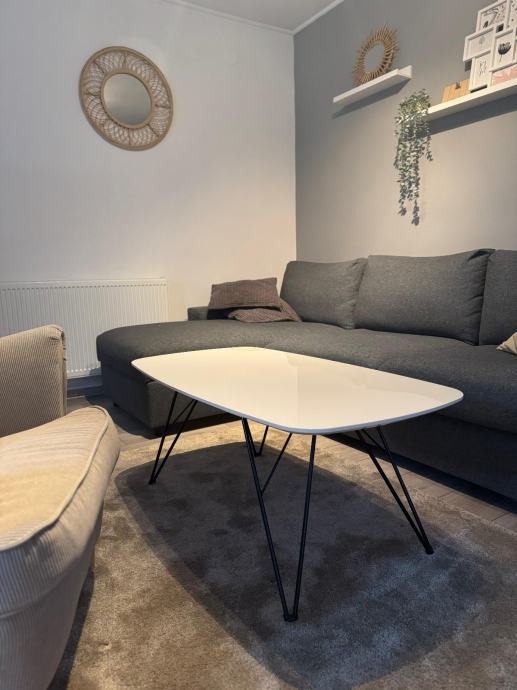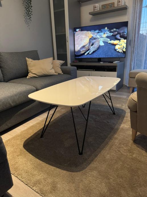Prodajem stolić za dnevni boravak, visokog sjaja, bijeli, bez ikakvih oštećenja. Noge su crne metalne. Dimenzija dužine 110 cm, širine 60 cm i visine 45 cm. Molim slati SMS poruke.