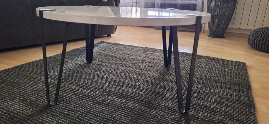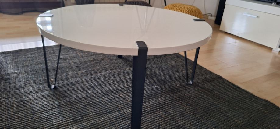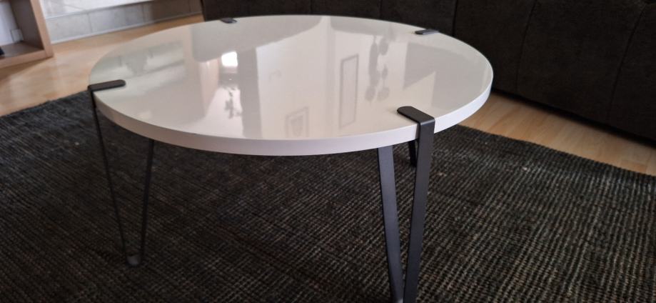 Stolić bijeli visoki sjaj, višak zbog preuređenja. Promjera 80 cm i visine 38 cm. Jako zgodan i očuvan.