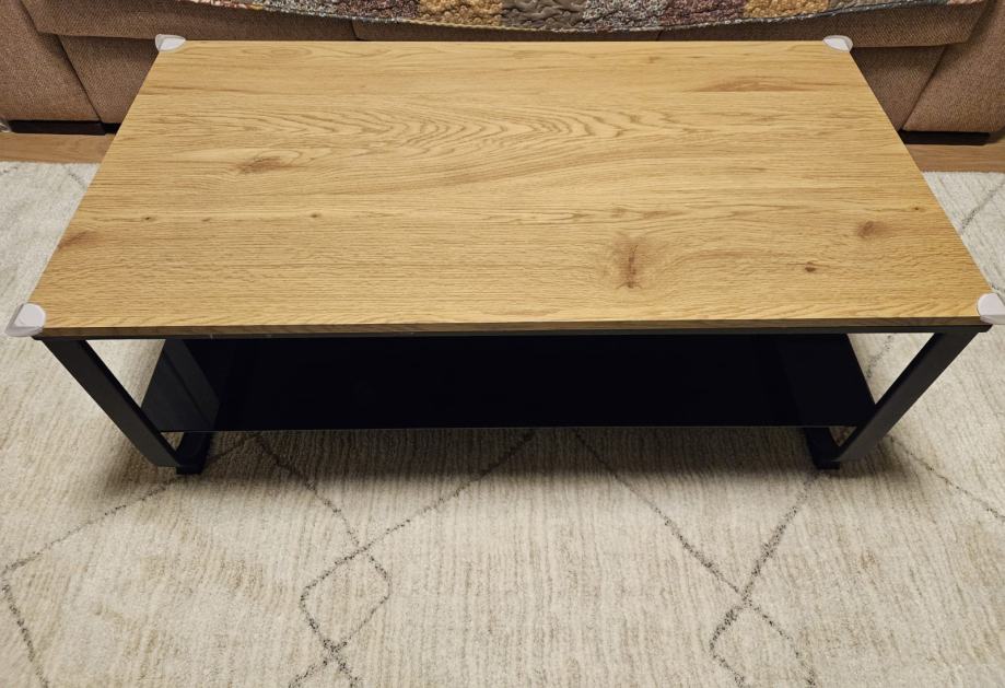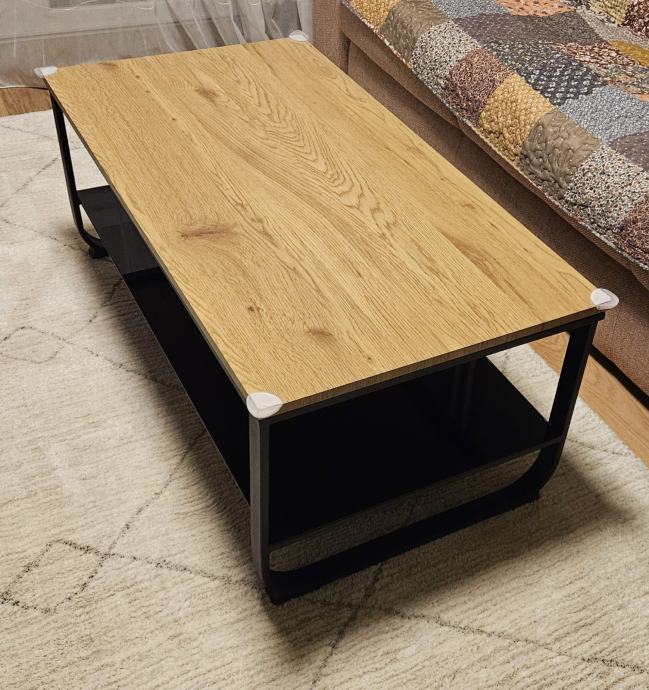 Prodajem stolić za dnevni boravak dimenzija 106x55x43. Donja polica je staklo crne boje, a gornja MDF hrast. Okvir je metalni crne boje.