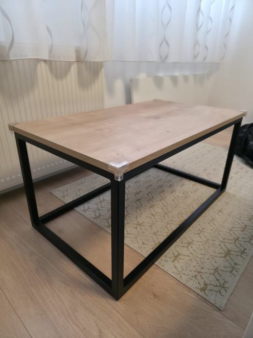 Prodaje se stolić za dnevni boravak. Rađen je po narudžbi prije 3 godine. Postolje je ručni rad od željeznih cijevi profila 2,5cm x 2,5cm, lakiran u mat crno te naposljetku plastificiran. Varovi na uglovima nisu vidljivi.