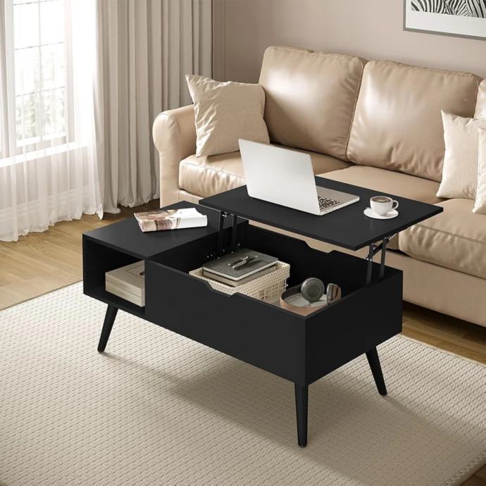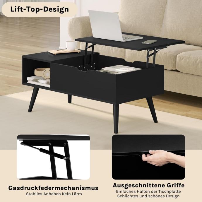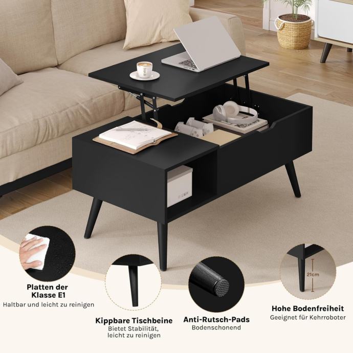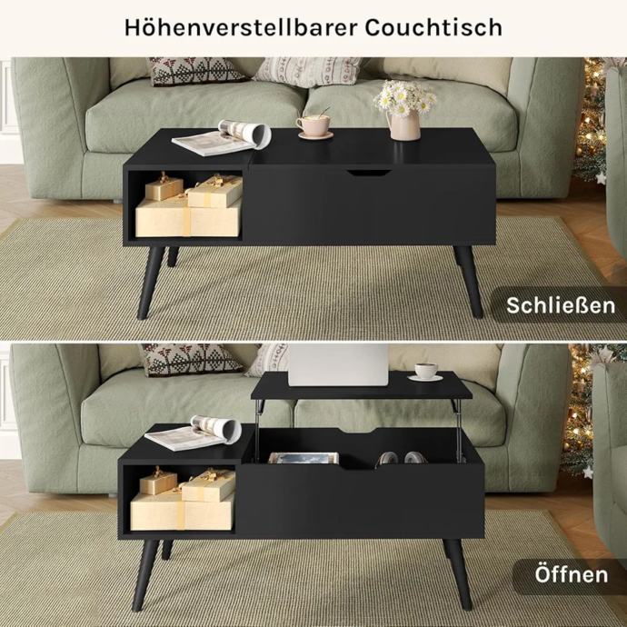stolić, podesiv po visini, stol za dnevni boravak s prostorom za pohranu, klub stolić, bočni stolić, stolić za kauč, 100 x (43-57) x 50 cm, crni