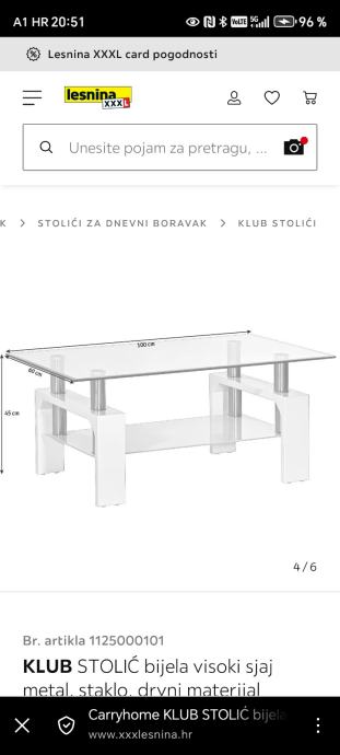 Stolić za dnevni boravak dužine 100cm, širine 60cm i visine 45cm