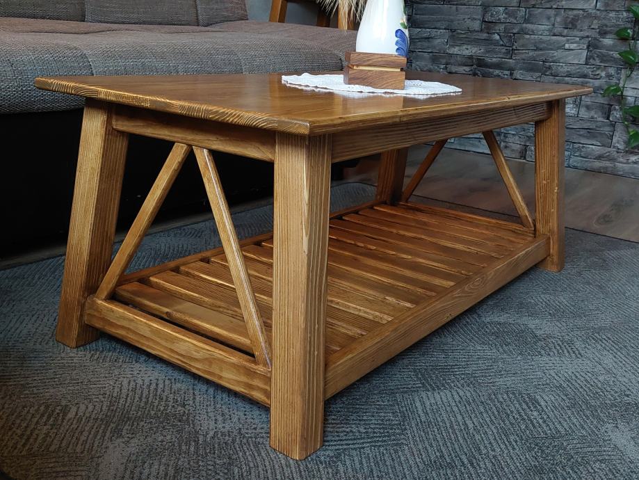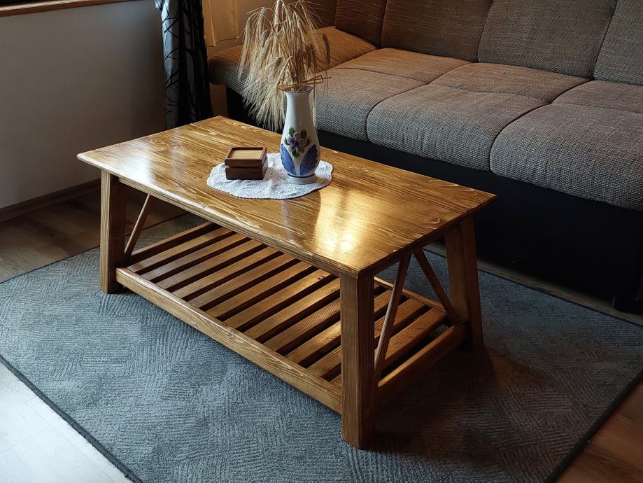 Ručno izrađen stolić za kavu od punog drva smreke s hrastovim premazom