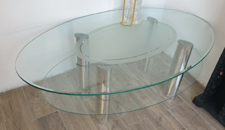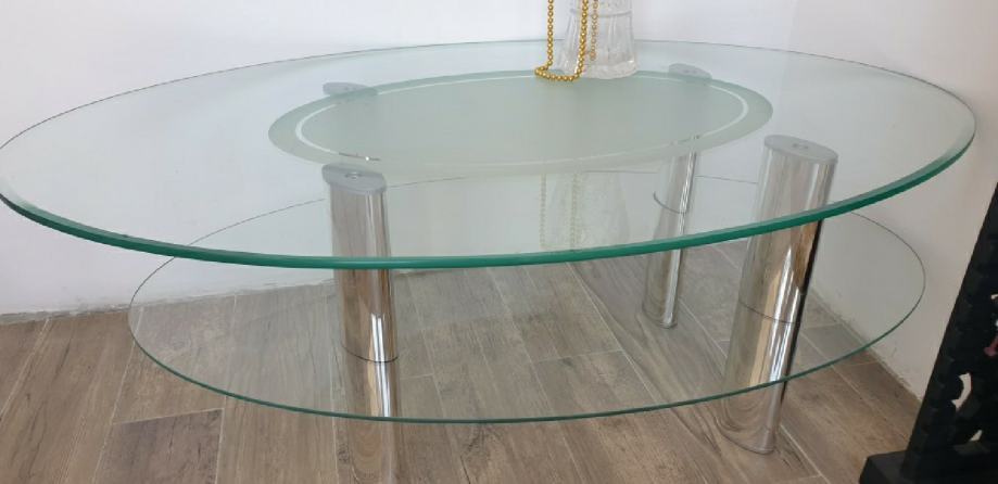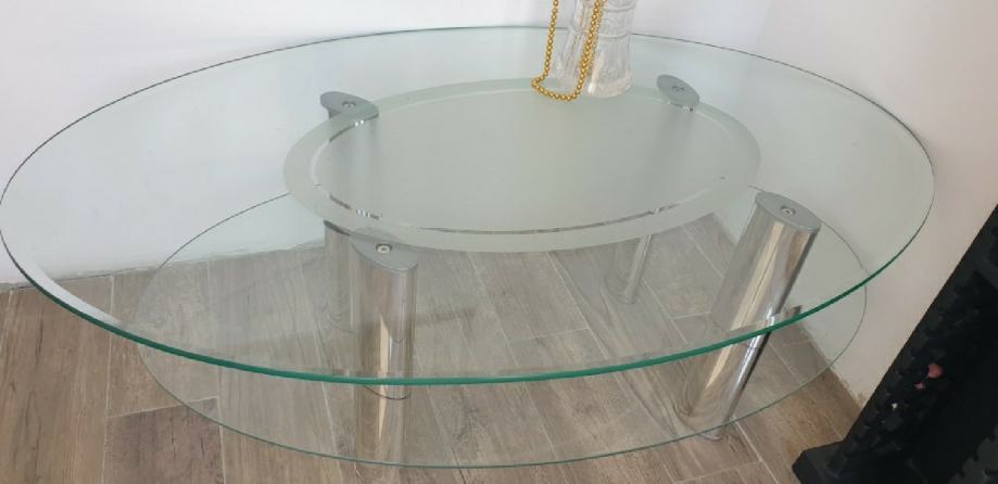 Staklo kao novo,noge krom,duzina 115 cm,sirok 70 cm,v 43 cm,zahvaljujući dizajnu na 2 razine stabilan i pruza dodatni prostor