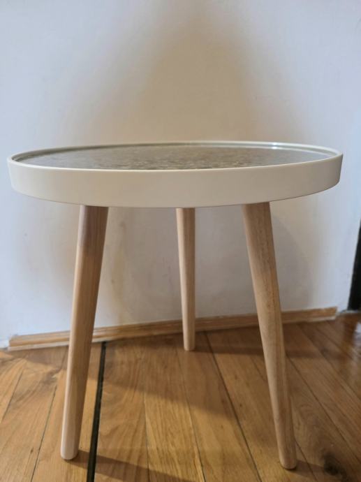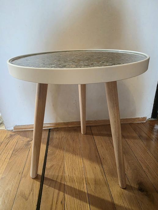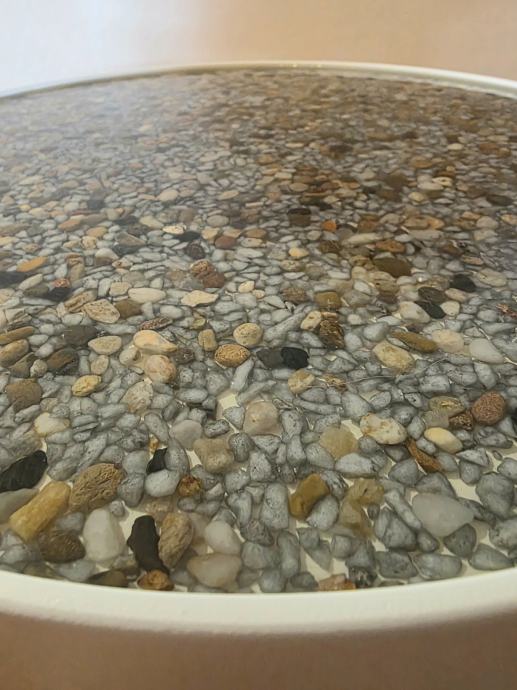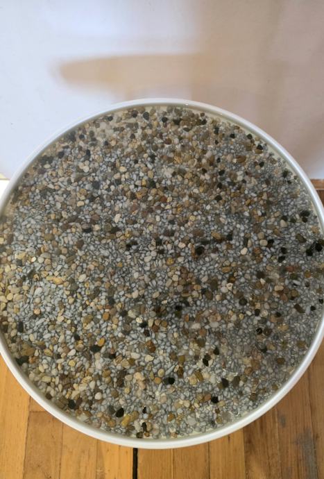 Stolić kupljen, ploča napravljena od epoxy smole i kamenčića.