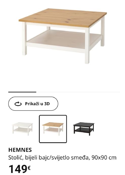 Prodajem stolić IKEA HEMNES 90x90 cm.