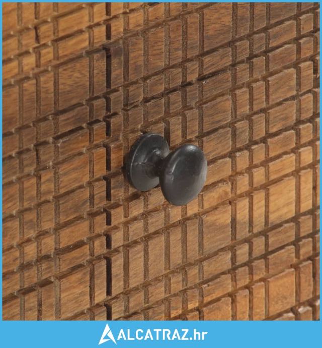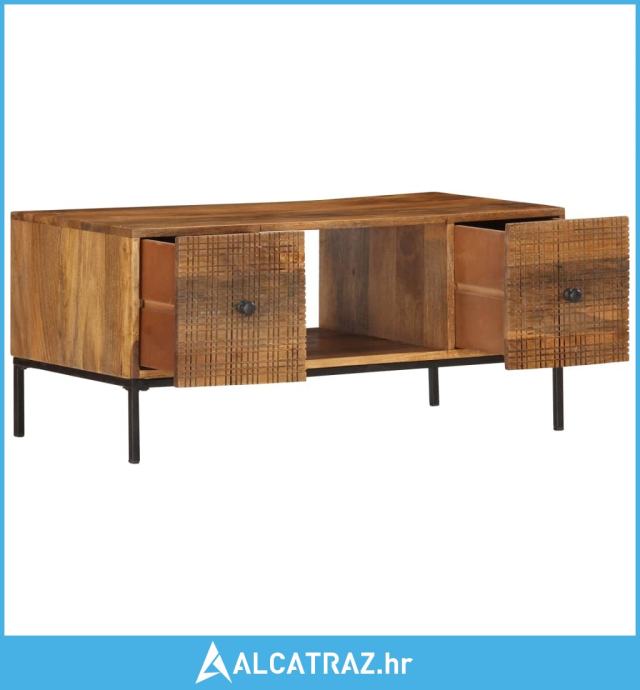 Stolić za kavu, s ručno izrezbarenim rešetkastim uzorcima na prednjoj strani, ručno je izrađen od masivnog drva manga koje je gusto i robusno tvrdo drvo s prekrasnim smeđim ili zlatnim prugama i konturama na površini. Svaki korak procesa provodi se s najvećom pažnjom, bilo da se radi o poliranju ili lakiranju, a vještina izrade doprinosi spektakularnom retro stilu. Prekrasni drveni uzorci čine svaki komad namještaja jedinstvenim i malo drugačijim od ostalih. Čelični okvir premazan prahom doprinosi industrijskom stilu bočnog stolića. Osim toga, ovaj stolić uz kauč ima 2 vrata i 1 otvoreni pretinac te pruža dovoljno prostora za držanje raznih manjih predmeta organiziranima i na dohvat ruke. Proizvod se lako sastavlja.