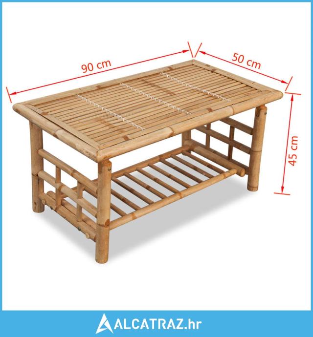 Ovaj stolić za kavu od bambusa sa svojim nenametljivim a istovremeno upečatljivim dizajnom, bit će jedinstven dodatak vašem dnevnom boravku ili vanjskom životnom prostoru. Izvorna boja bambusa unijet će tropski izgled vašem dekoru.