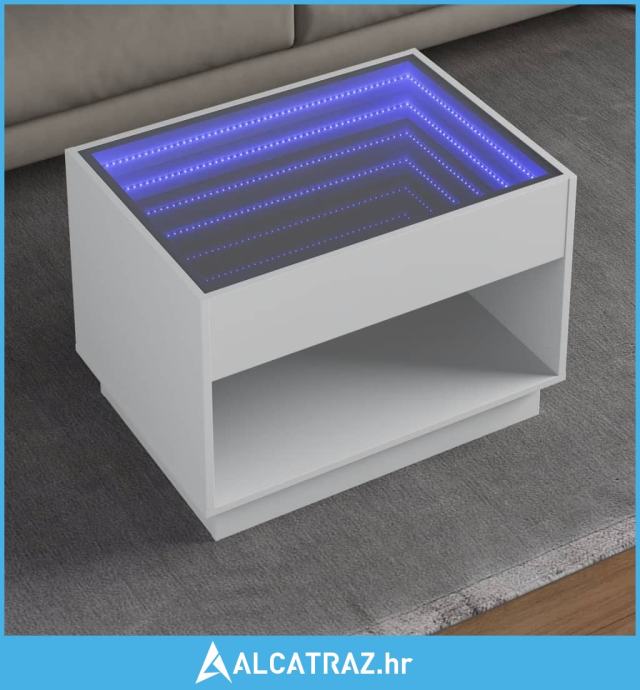 Stolić za kavu s beskonačnim LED svjetlima bijeli 70x50x50 cm - NOVO