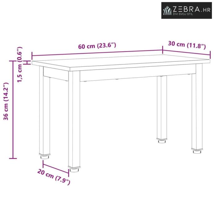 Čvrsta borovina: Površina stola je od čvrste borovine, s prirodnim godovima koji dodaju eleganciju tvojem prostoru. Prirodna snaga bora jamči dugotrajnu upotrebu, pružajući ljepotu i izdržljivost. Ova čvrsta površina idealna je za podršku knjigama, pićima i dekoracijama.