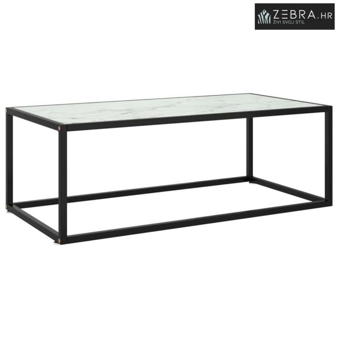 Stolić za kavu crni s bijelim mramornim staklom 100x50x35 cm - Bijela