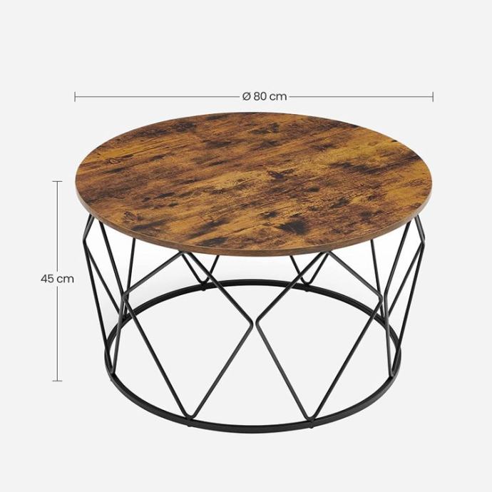 Okvir u obliku dijamanta i okrugla ploča stola u rustikalnom tonu daju stoliću za kavu privlačan štih! Ova kombinacija oduševit će vaše goste! Uklonjiva ploča stola (Ø 80 cm) također služi kao pladanj za odlaganje grickalica ili pića. Ispod ploče stola možete spremiti deke ili druge stvari kako biste optimalno iskoristili prostor u svom domu. 8 crnih čeličnih rombova i robusna iverica daju ovom stolu za dnevni boravak dug radni vijek i stabilno držanje. Za sve informacije nazovite na broj telefona 092/399-75-19