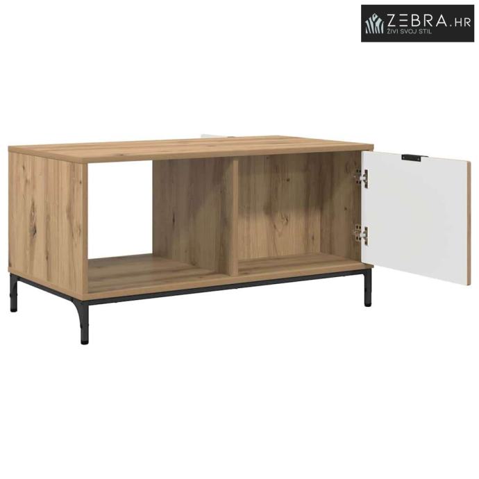 Ovaj stolić za kavu je savršen spoj modernog izgleda i funkcionalnosti. Namijenjen dnevnom boravku, izrađen je od konstruiranog drva s elegantnim crnim okvirom koji donosi suvremeni šarm, savršeno se uklapajući u razne stilove. S puno prostora za pohranu i vratima s šarkama, istovremeno je praktičan i stilski, savršen za one koji vole organiziranost i dobar dizajn.