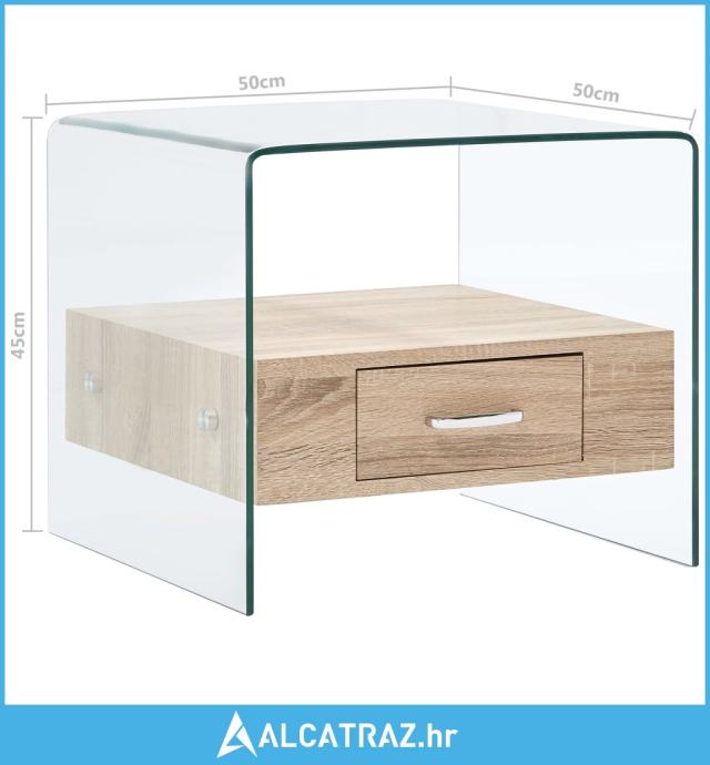 Stolić za kavu s ladicom 50 x 50 x 45 cm od kaljenog stakla - NOVO