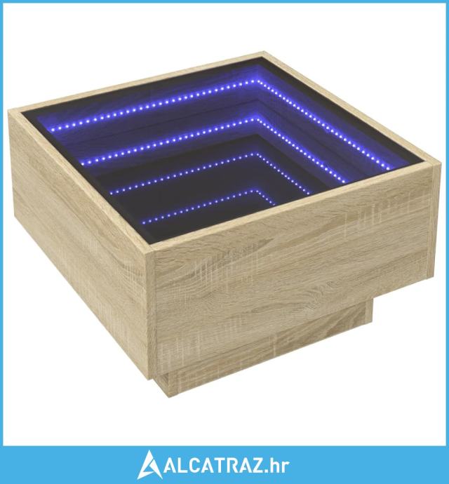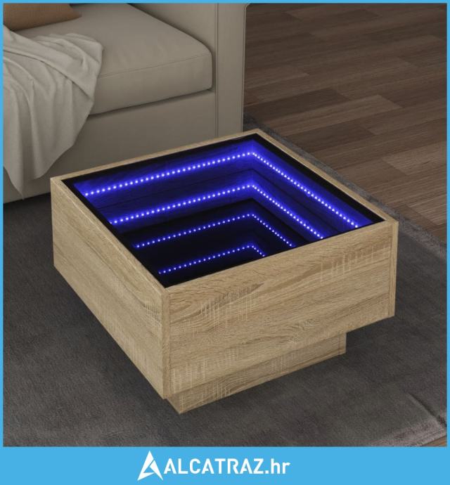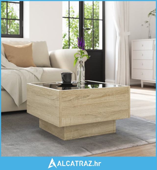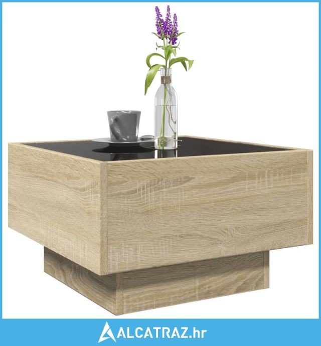 Stolić za kavu LED boja hrasta 50x50x30 cm konstruirano drvo - NOVO