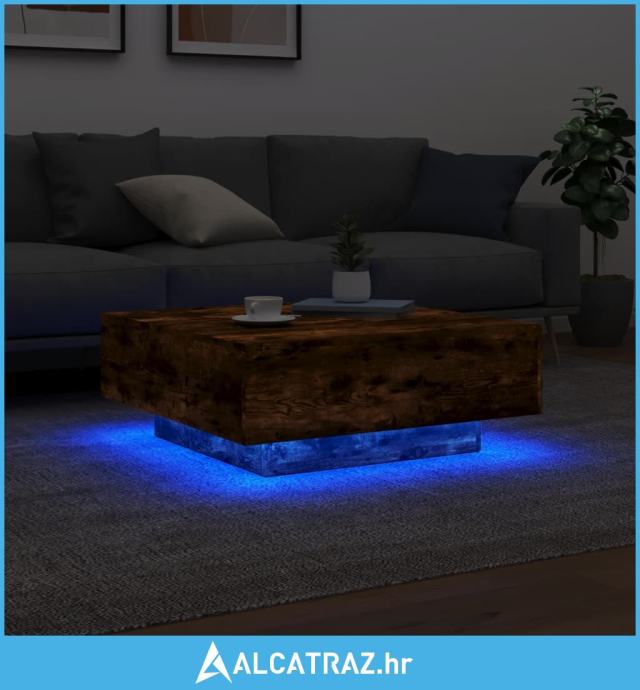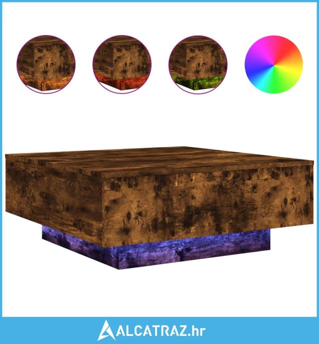 Stolić za kavu s LED svjetlima boja dimljenog hrasta 80x80x31cm - NOVO