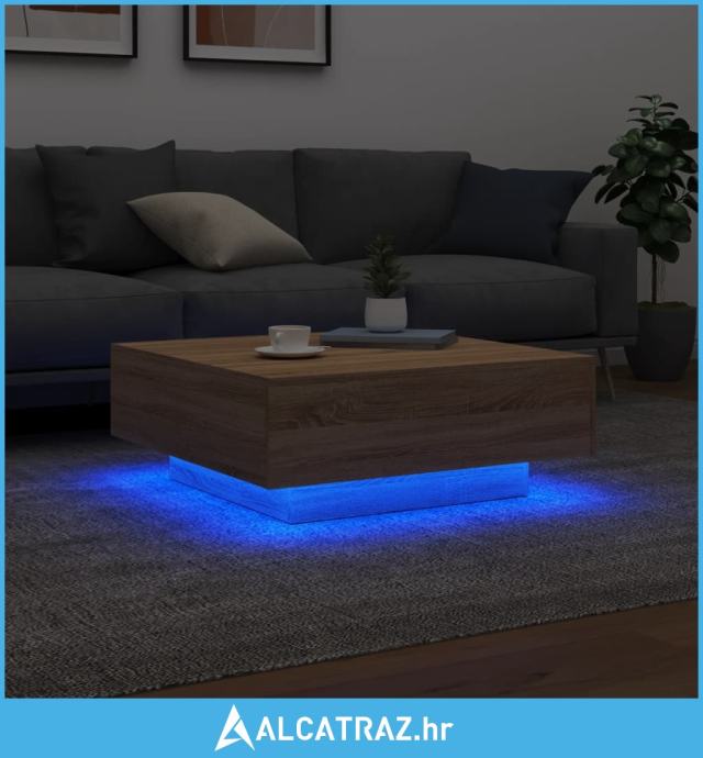 Stolić za kavu s LED svjetlima boja hrasta sonome 80x80x31 cm - NOVO