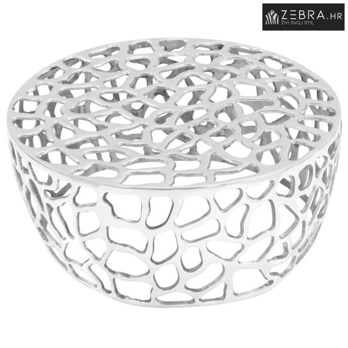 Napravljen od lijevanog aluminija, ovaj stolić za kavu izdržljiv je i visokokvalitetan. Naš stolić ima čvrstu stolnu ploču, na koju možete staviti hranu ili piće, ili izložiti ukrasne predmete kao što su okviri s fotografijama ili čak biljke lončanice. Privlačan šuplji dizajn također dodaje šarm uređenju vašeg interijera.