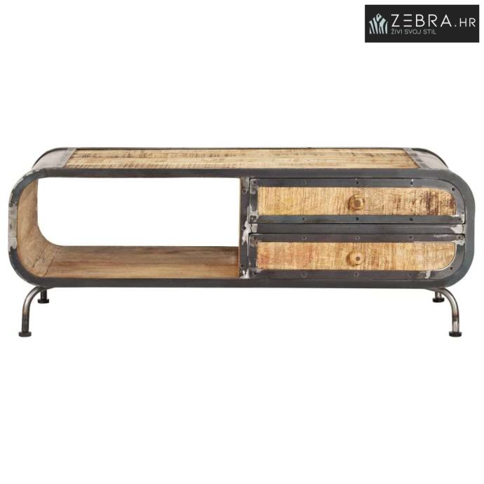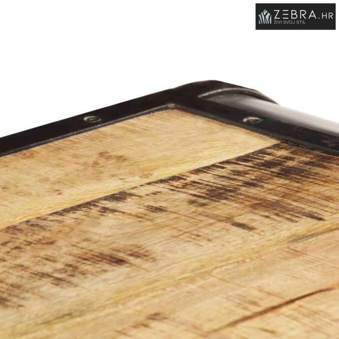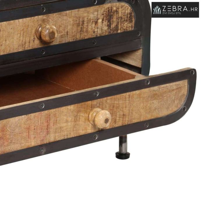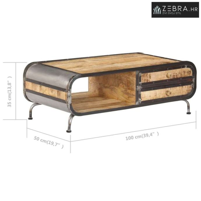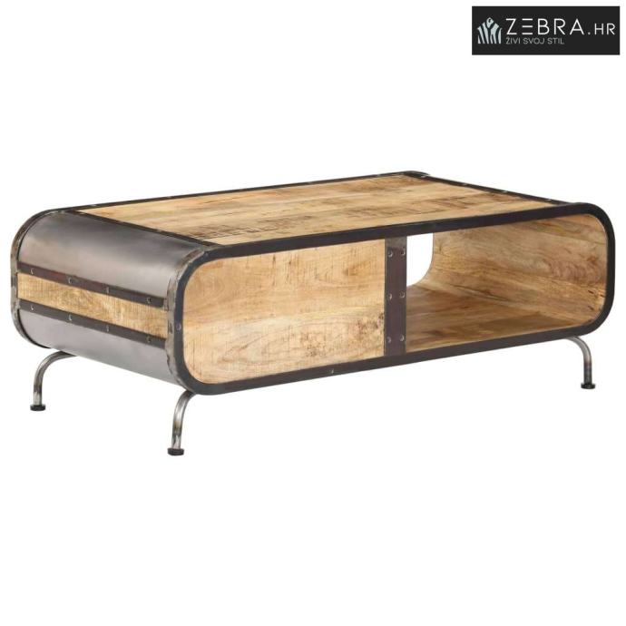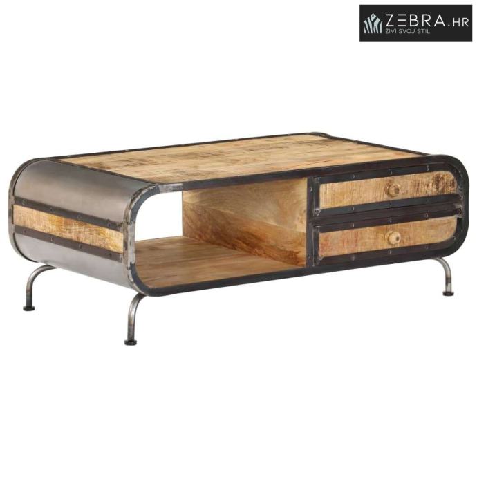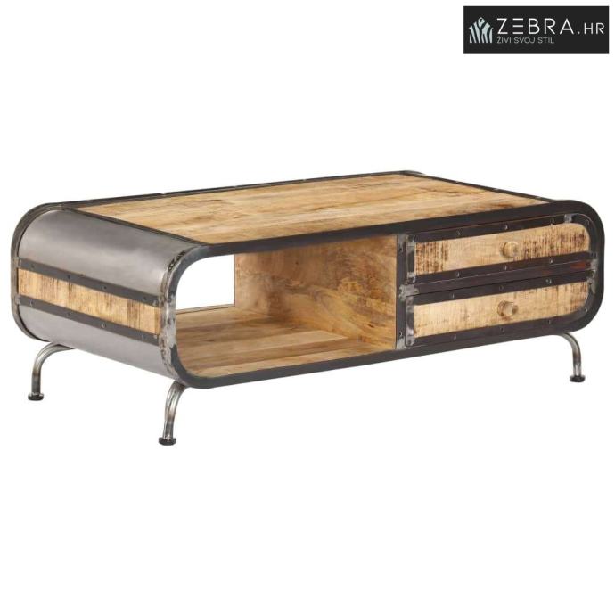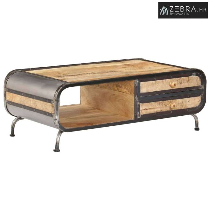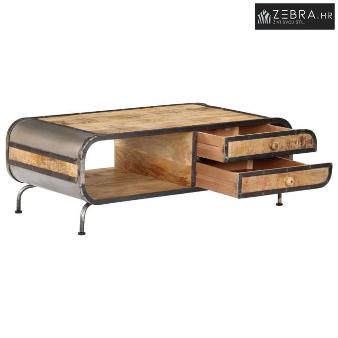 Stolić uz kauč napravljen je od masivnog drva manga, tvrdog drva s gustim godovima. Grubo drvo manga odlikuje se snagom da podnese težinu, ali i izdrži trošenje s vremenom. Zbog toga je ovaj lijepo dizajniran drveni stolić za kavu stabilan, izdržljiv i privlačan. Bočni stolić u potpunosti je ručno izrađen, a profinjeni drveni godovi čine svaki komad namještaja osobitim i pomalo drukčijim od ostalih. Željezni okvir pridonosi industrijskom stilu stolića. Stolić za dnevni boravak ima 2 ladice i 1 odjeljak, što pruža dovoljno prostora za spremanje vaših multimedijskih uređaja, knjiga, kao i raznih drugih predmeta.