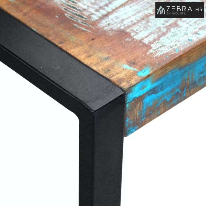 Stolna ploča napravljena je od obnovljenog drva, što znači da je svaki komad namještaja jedinstven i pomalo drukčiji od sljedećeg. Namještaj izrađen od obnovljenog drva ima karakteristike raznih vrsta drva, kao što su tikovina, drvo manga i bagrema. Obnovljeno je drvo čvrsto, stabilno, izdržljivo i lijepo. Znakovi trošenja i vidljiva struktura godova daju svakom komadu vlastitu povijest i jedinstven izgled.