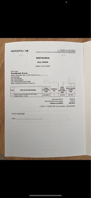 Prodajemo nekorišteni stolić kupljen na namještaj.hr (vidi račun), sastavljen i od tad samo stoji u spremi, promjera 80 cm